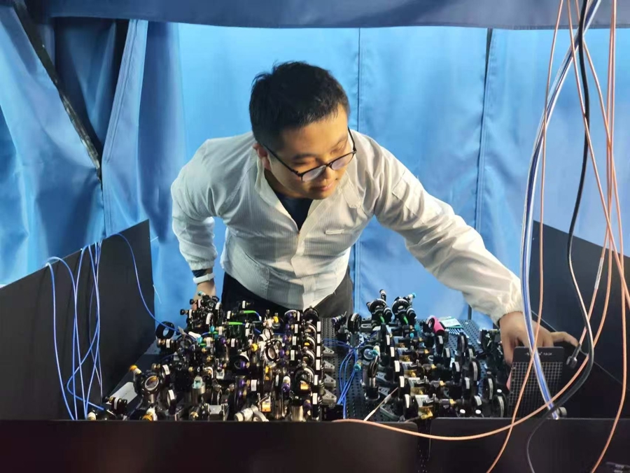 复旦科研人员在调试原子量子计算机的光路。